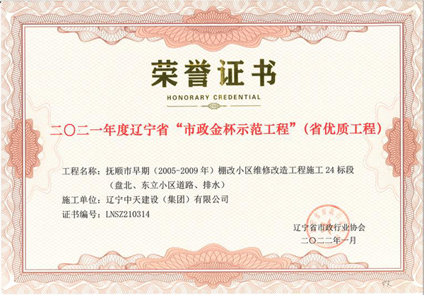 企業(yè)先后榮獲“全國優(yōu)秀施工企業(yè)”、 “中國AAA級(jí)信用企業(yè)”、“全國保障性安居工程建設(shè)勞動(dòng)競賽先進(jìn)單位”、“遼寧省最受尊敬企業(yè)”、“遼寧省優(yōu)秀建筑業(yè)企業(yè)”、“遼寧省工程建設(shè)質(zhì)量管理優(yōu)秀企業(yè)”、 “遼寧省守合同、重信用企業(yè)”、遼寧省“AAA級(jí)信用企業(yè)”、 “撫順市安全生產(chǎn)先進(jìn)單位、紅旗單位”、“撫順市安康杯競賽先進(jìn)集體”等多項(xiàng)殊榮。